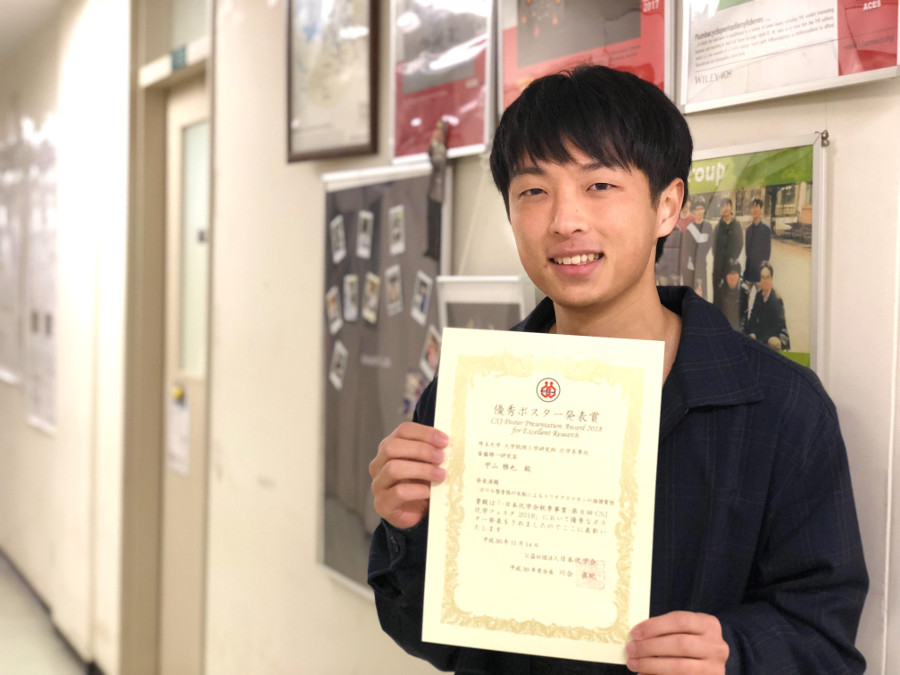 - 斎藤雅一研究室の甲山雅也君(博士前期課程2年)が,第8回CSJ化学フェスタでポスター賞を受賞しました。おめでとうございます。