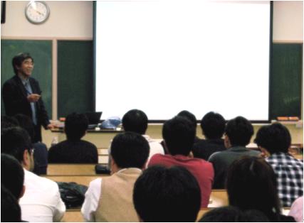● 2009年7月22日に,学科による進路指導のための「キャリアパス講演会」が開かれました。 今回は,本学科卒業生の芳賀隆太氏(JFEケミカル株式会社勤務, 2006年博士終了),および藤田有真氏(ローム株式会社勤務, 2003年修士修了)の両名に講演および相談会を行っていただきました。当日の様子と講演題目は次の通りでした。
